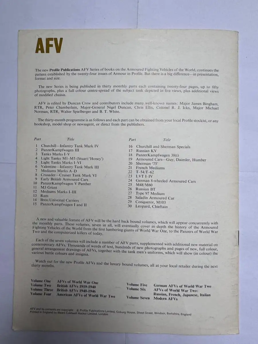 AFV 5 LIGHT TANKS MARKS I-IV. Duncan, Major-General N. W., Profile Publications N.D. 70er Jahre G2024-07-03-024AFV 5 LIGHT TANKS MARKS I-IV. Duncan, Major-General N. W., Profile Publications N.D. 70er Jahre