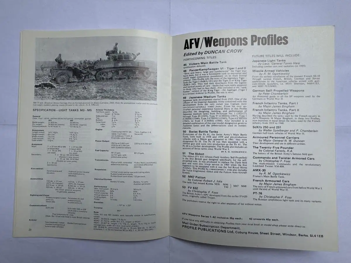 AFV Weapons Profile 4 Light Tanks M1-M5, Chris Ellis, Peter Chamberlain, Profile Publications N.D. 70er Jahre G2024-07-03-013AFV Weapons Profile 4 Light Tanks M1-M5, Chris Ellis, Peter Chamberlain, Profile Publications N.D. 70er Jahre