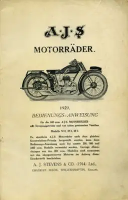AJS 350 ccm M-Modelle Bedienungsanleitung 1929