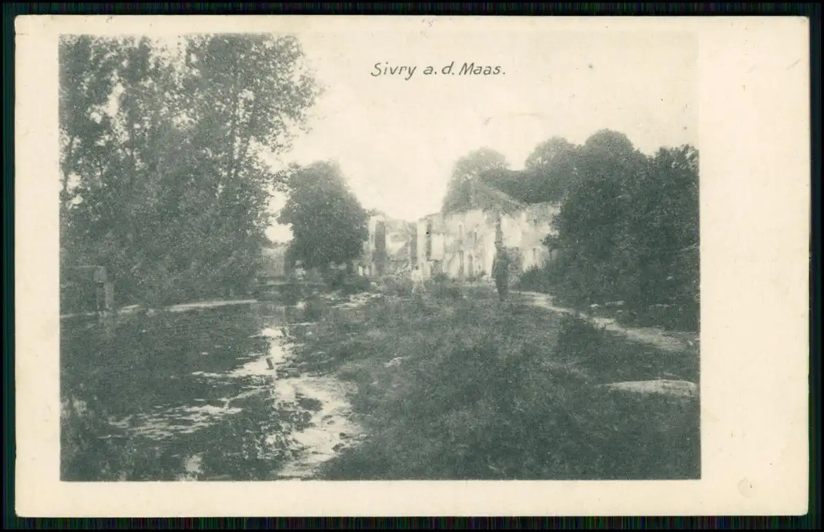 AK 1. WK -Sivry-sur-Meuse - deutsche Soldaten an der Maas - 1916 Feldpost gel.
