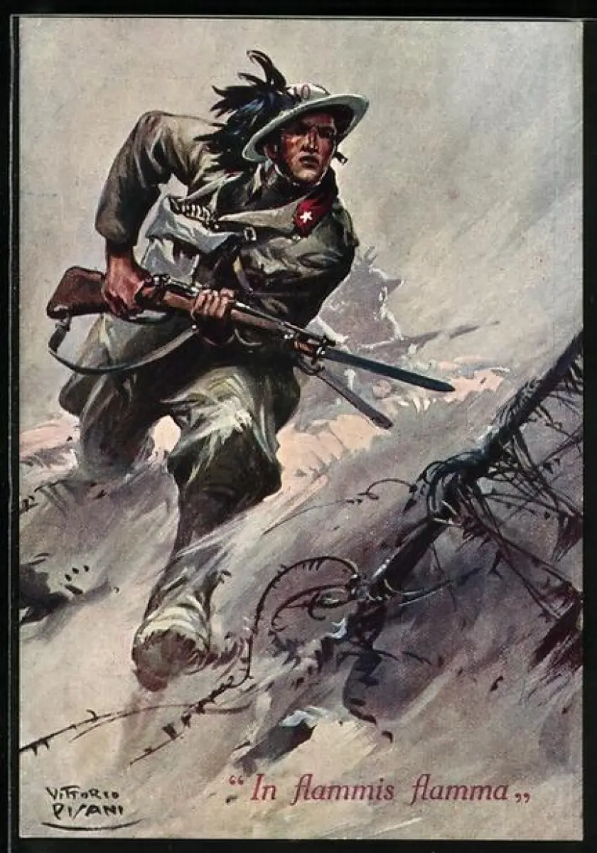 AK 10. Reggimento Bersaglieri, Infanterist überwindet Stacheldraht-Hinderniss