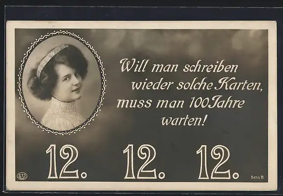 AK 12.12.12, Will man schreiben wieder solcher Karten, muss man 100 Jahre warten
