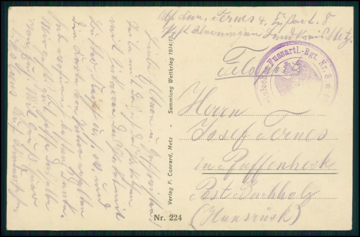 Mit handschriftlichem Text, klar lesbar, Stempel eines Truppenteils.