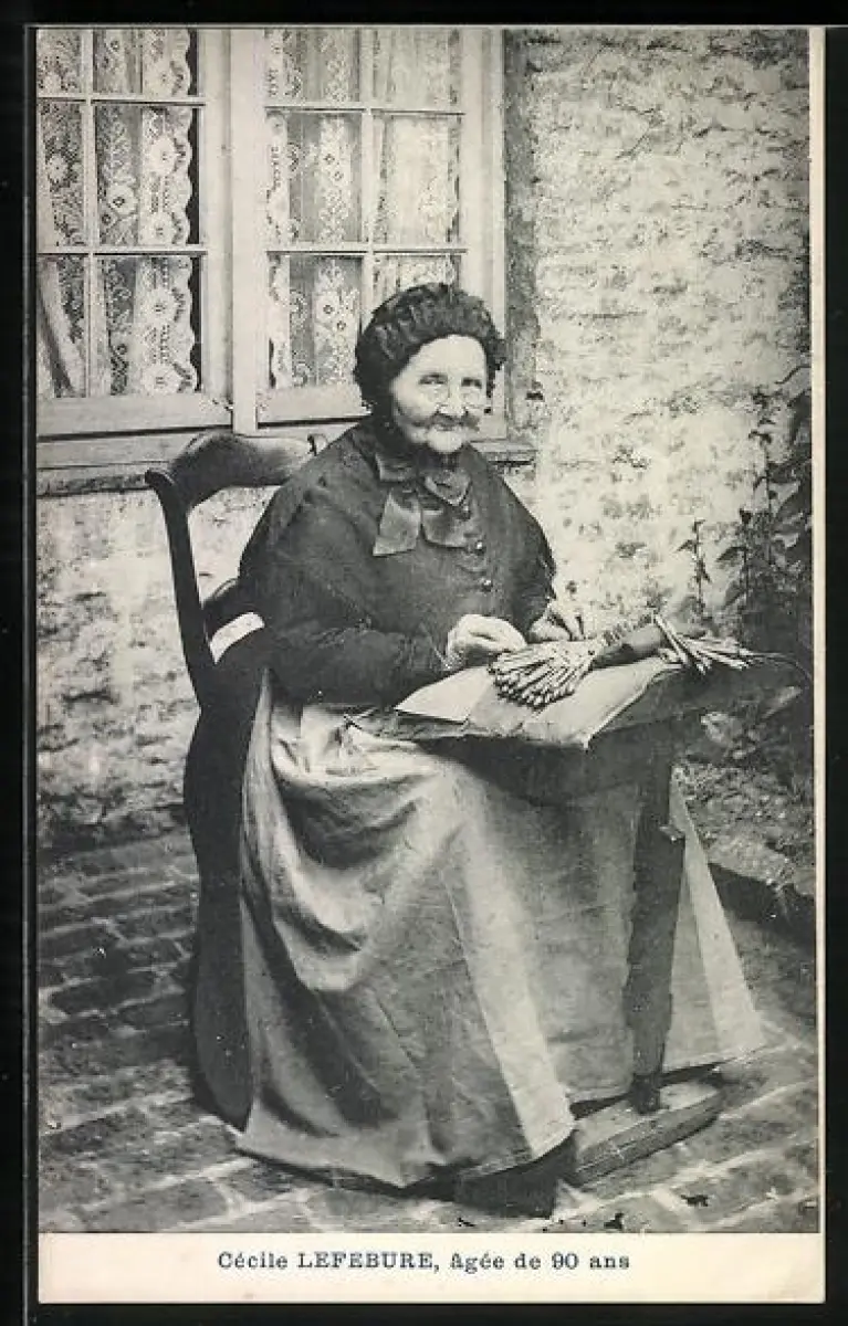 AK 90jährige Klöpplerin Cécile Lefebure, Portrait
