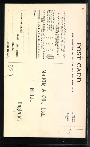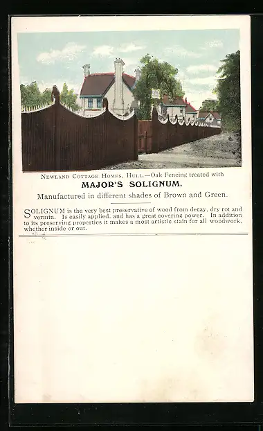 AK A wooden fence, Advert for Major`s Solignum, the best preservative of wood