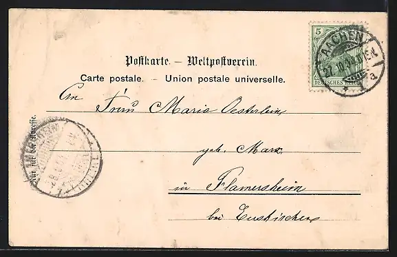 alte Ansichtskarte, gelaufen 1904, geklebter Einriss unten Mitte, guter Zustand