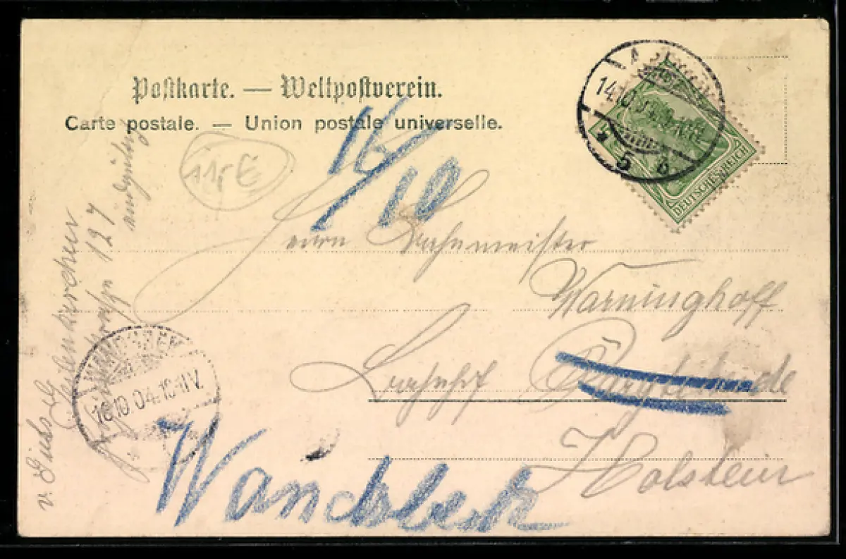alte Ansichtskarte, gelaufen 1904, Eckknick oben rechts, guter Zustand