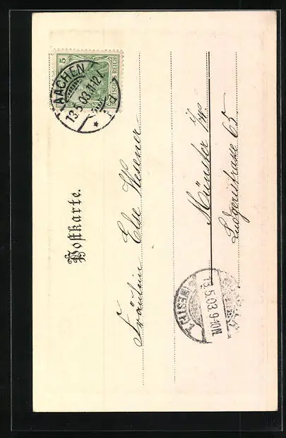 alte Ansichtskarte, gelaufen 1903, Stempelspur, guter Zustand