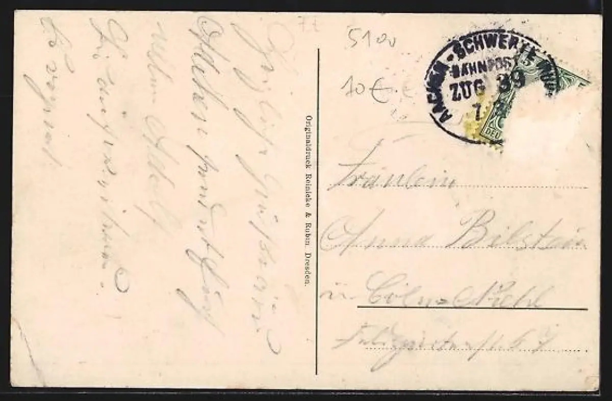alte Ansichtskarte, gelaufen, Briefmarke entfernt, Eckknick li. oben, kleiner Einriss li. oben, guter Zustand