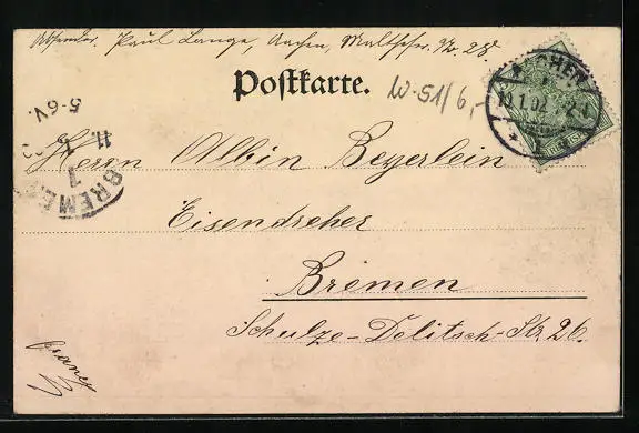 alte Ansichtskarte, gelaufen 1902, guter Zustand