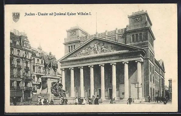 AK Aachen, Theater mit Denkmal Kaiser Wilhelm I.