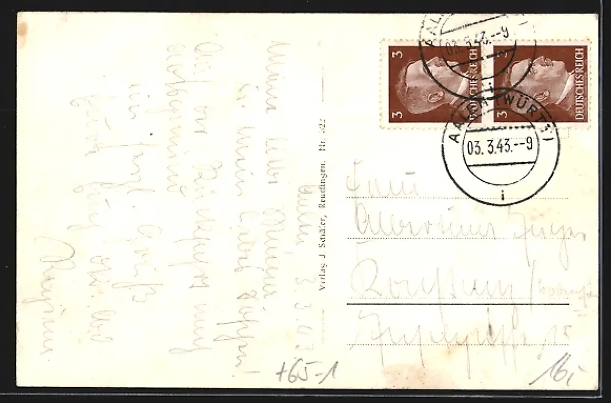 gelaufen 1943, Stempelspur, Bugspur links unten, guter Zustand
