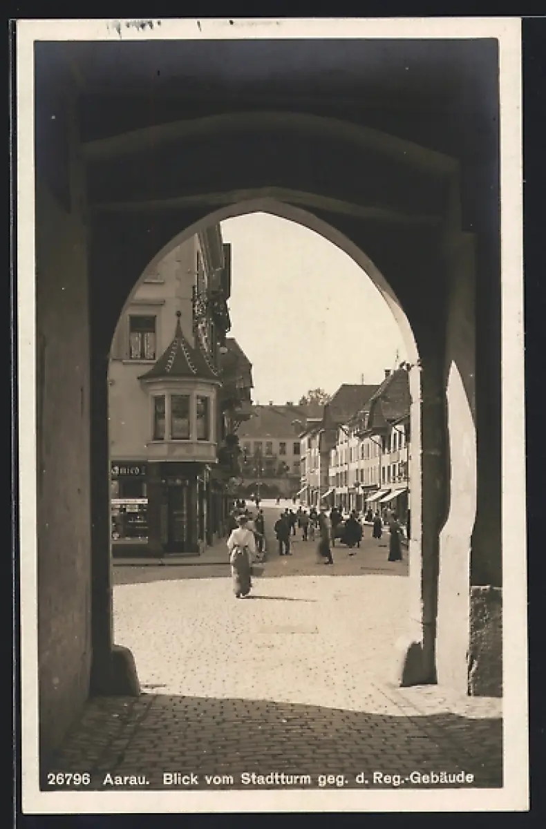 AK Aarau, Blick vom Stadtturm gegen das Regierungs-Gebäude