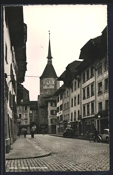 AK Aarau, Obere Rathausgasse, Strassenpartie mit Turm
