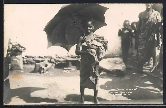 AK Accra, Junges Ghanaisches Mädchen im Kleid mit Sonnenschirm