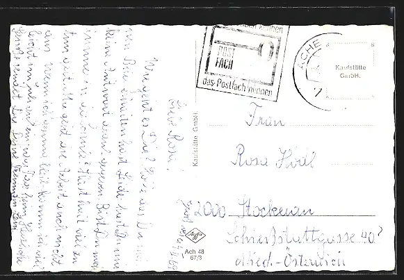 alte Ansichtskarte, gelaufen 1969, Briefmarke entfernt, guter Zustand