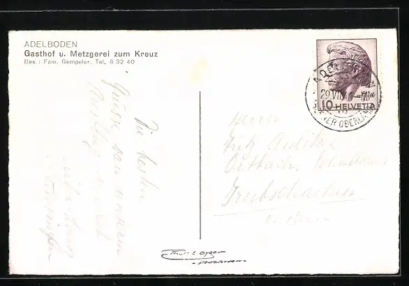 AK Adelboden, Gasthof und Metzgerei zum Kreuz
