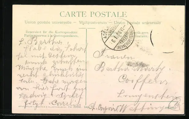 alte Ansichtskarte, gelaufen 1908, Briefmarke entfernt, guter Zustand