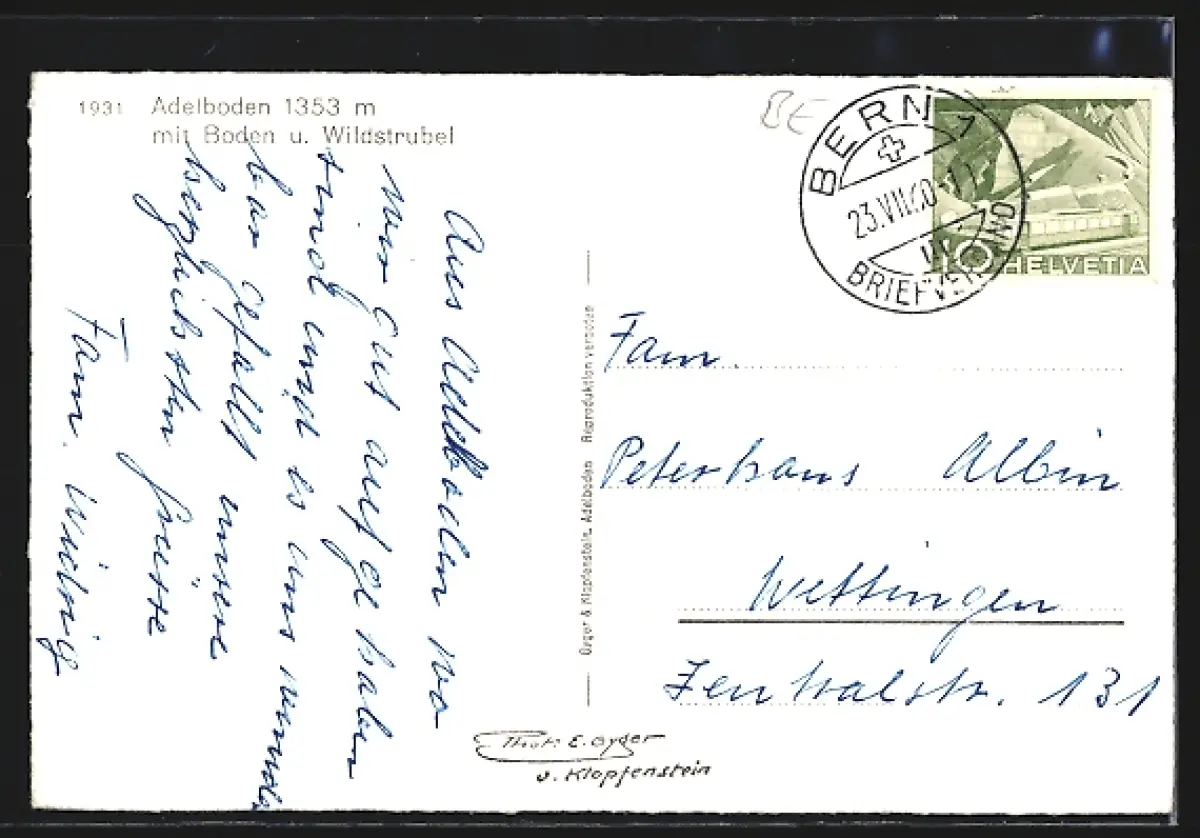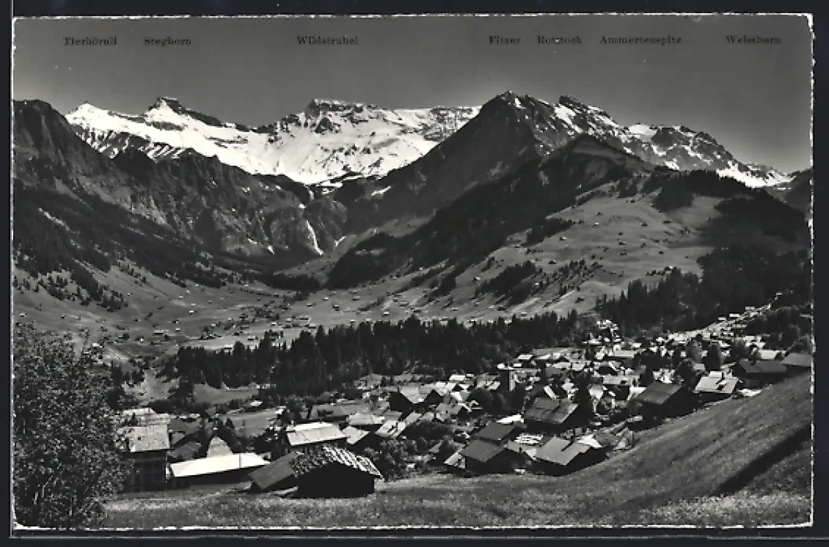 AK Adelboden, Teilansicht mit Boden, Wildstrubel und Weisshorn