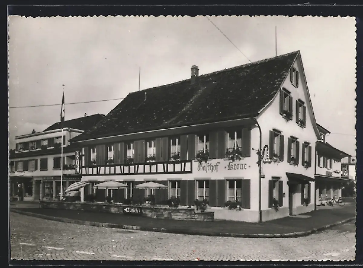 AK Adliswil /Zürich, Gasthof Krone Streuli-Spengler von der Strasse aus