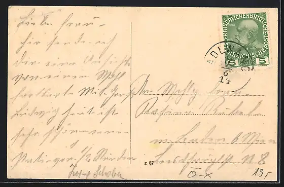 gelaufen 1914, Eckknicke li. oben und re. unten, Bugspur re. oben, guter Zustand
