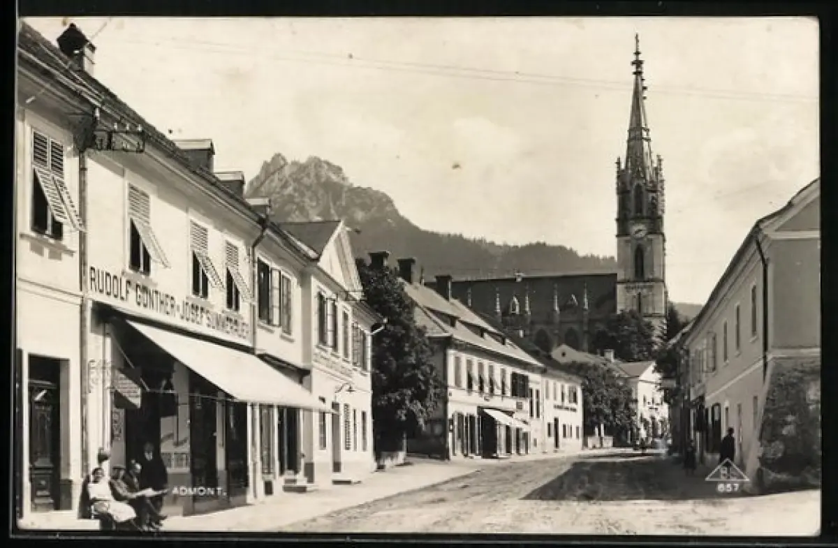 AK Admont, Geschäftsstrasse mit Blick zur Kirche