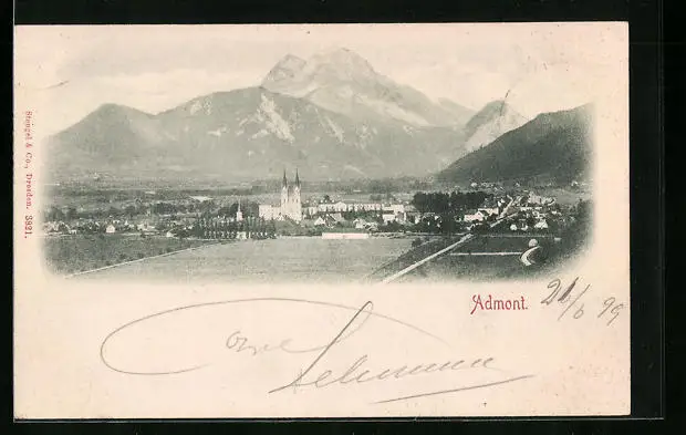 AK Admont, Ort mit Doppelturmkirche