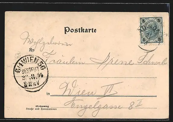 alte Ansichtskarte, gelaufen 1904, Stempelspur, guter Zustand
