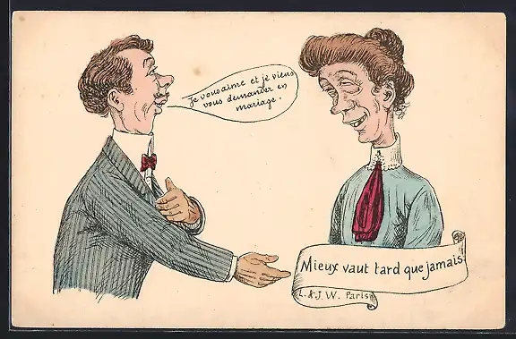 AK Älterer Herr hält um die Hand einer unansehnlichen Dame an