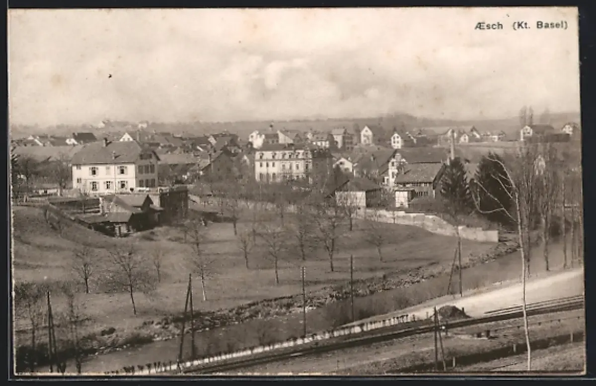 AK Aesch /Kt. Basel, Ortsansicht mit alter Mauer aus der Vogelschau