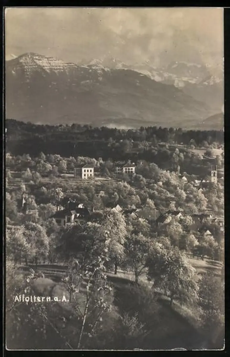 AK Affoltern a. A., Teilansicht gegen die Berge