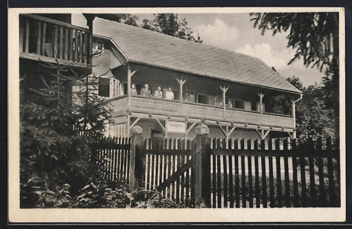 AK Aflenz, Jauring, Pension Koppi, Gäste auf dem Balkon