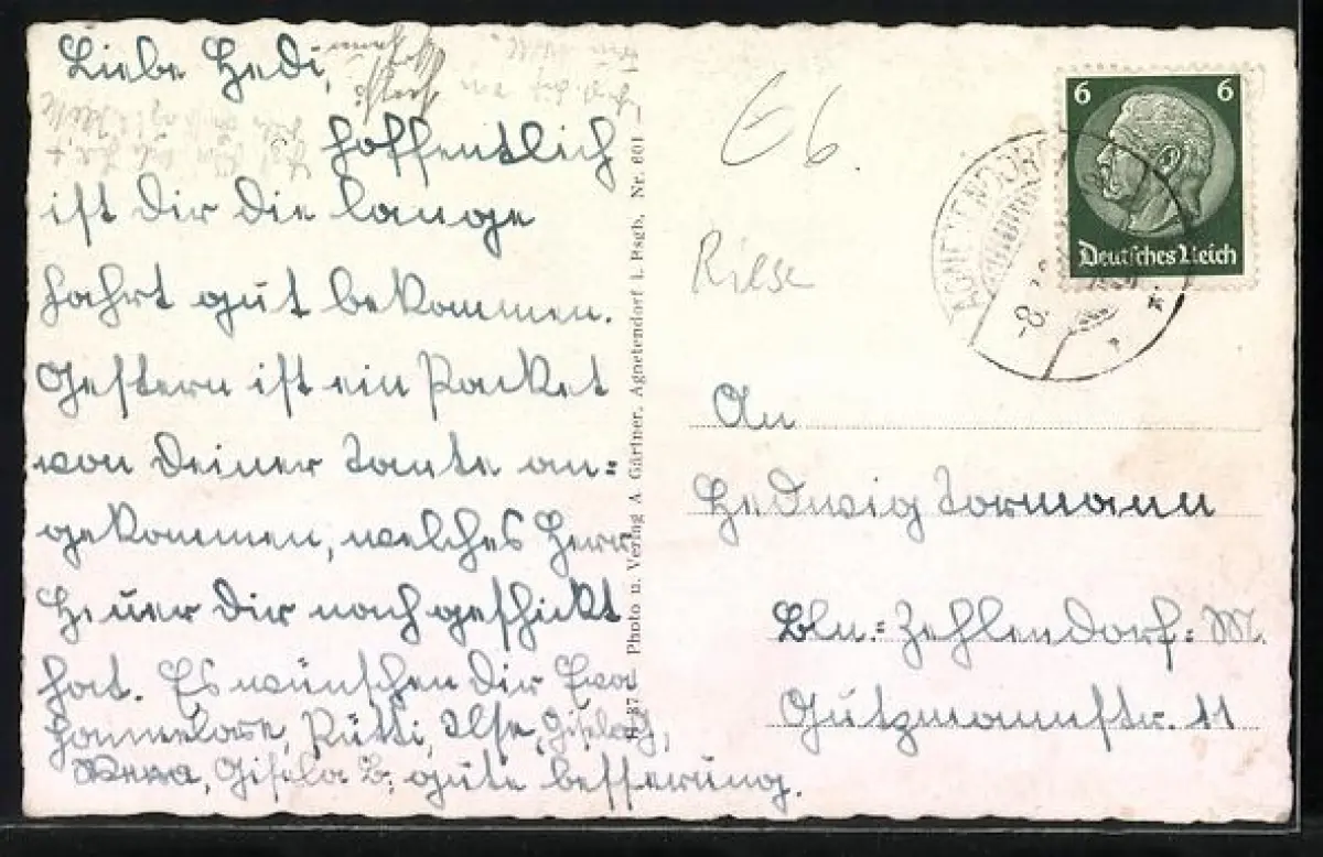 AK Agnetendorf, Blick vom Berg auf den Ort