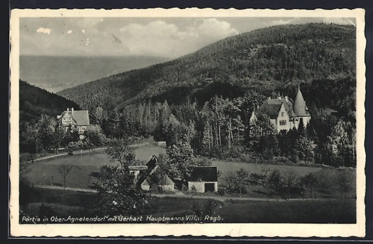 AK Agnetendorf, Gerhart Hauptmanns Villa, Landschaft