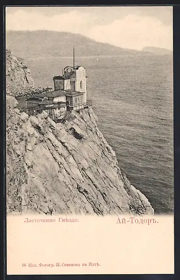 AK Ai-Todor, Schwalbennest auf Felsen mit Meerblick