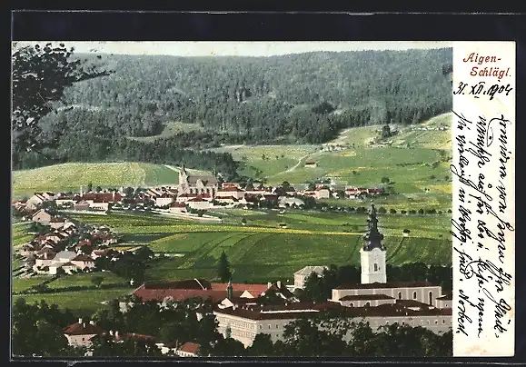AK Aigen-Schlägl, Ortsansicht aus der Vogelschau
