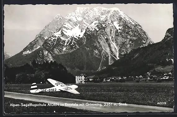 AK Aigen im Ennstale, Alpen-Segelflugschule, Segelflieger neben der Landebahn