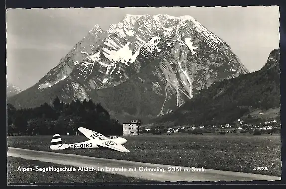 AK Aigen im Ennstale, Alpen-Segelflugschule, Segelflieger neben der Landebahn