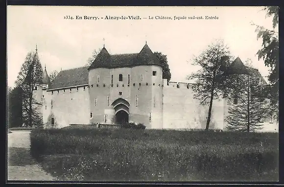AK Ainay-le-Vieil, Le Château, facade sud-est. Entrée