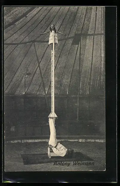 AK Akrobat Antony Weimann balanciert ein kleines Mädchen auf einer Leiter