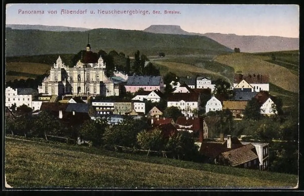AK Albendorf, Ortsansicht mit Heuscheuergebirge