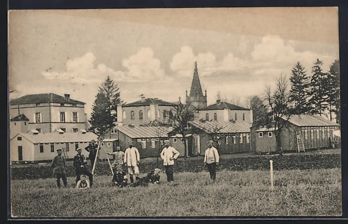 AK Albesdorf /Loth., Hôpital St. Anna avec soldats devant le bâtiment