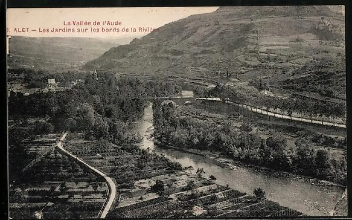 AK Alet /Vallée de l`Aude, Les Jardins sur les bords de la Rivière