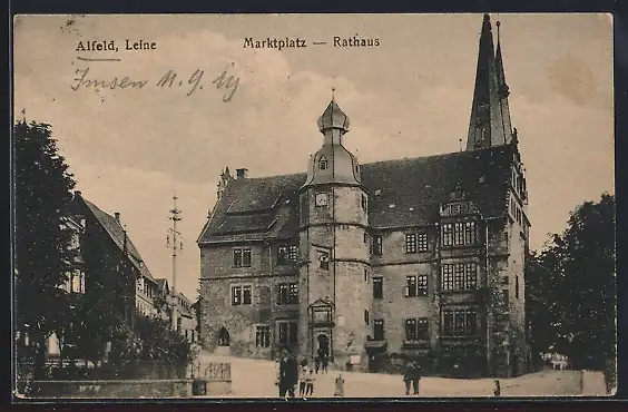 AK Alfeld /Leine, Marktplatz mit Rathaus