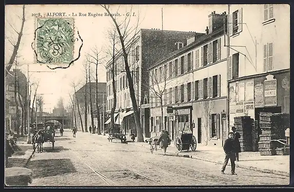 AK Alfort, La Rue Eugène Renault avec charrettes et passants