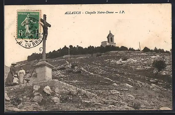 AK Allauch, Chapelle Notre-Dame et croix sur la colline