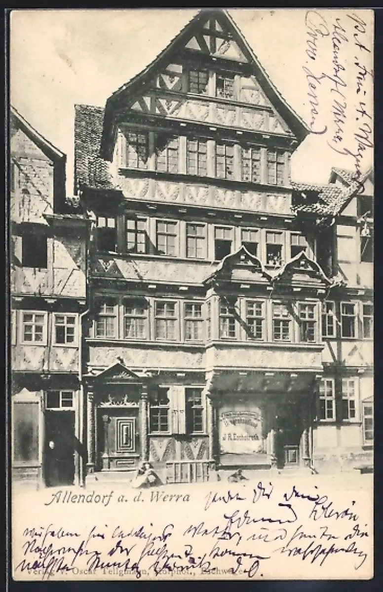 AK Allendorf a. d. Werra, Fachwerkhaus, Geschäft von J. R. Eschstruth