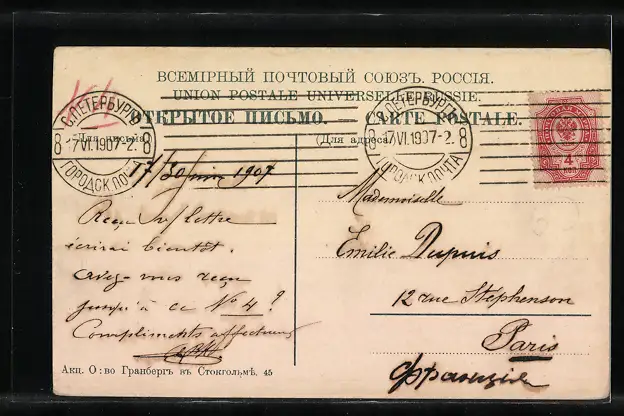 gelaufen 1907, Eckknick oben re., Stempelspur, guter Zustand