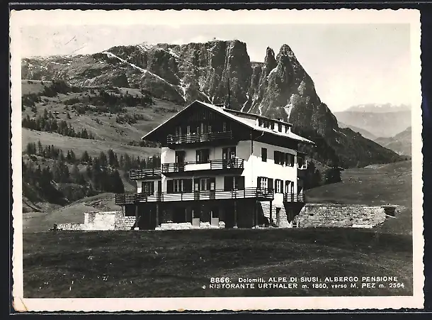 AK Alpe di Siusi /Dolomiti, Ristorante Urthaler verso M. Pez