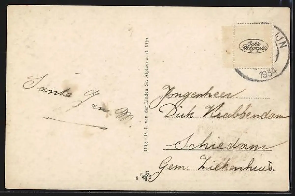 alte Ansichtskarte, gelaufen 1934, Briefmarke entfernt, guter Zustand